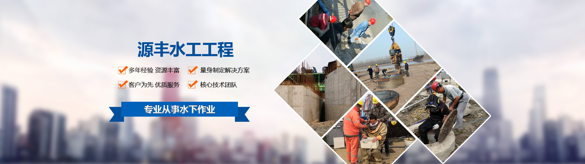 ——專業從事水下作業的股份制企業他們也在搜:堵漏施工 / 鋼板樁施工 / 模袋混凝土施工 / 水下施工 / 沉井施工 / 過河管道施工 /